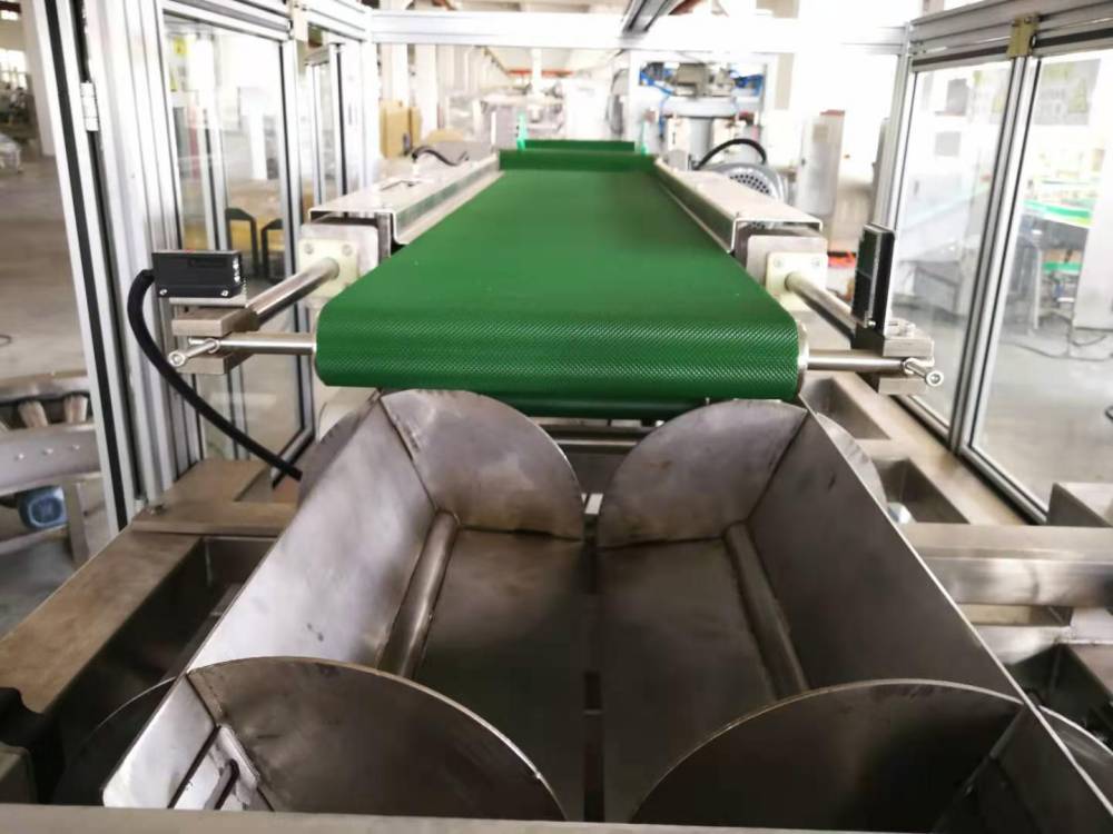 3. The equipment composition mainly includes: double-layer inclined conveyor, high-speed conveyor, counting and sorting machine, woven bag automatic packaging machine, sewing machine, product conveyor, etc.